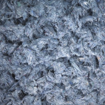 Made by melting down used PET bottles or textile waste and re-spinning into fibers.